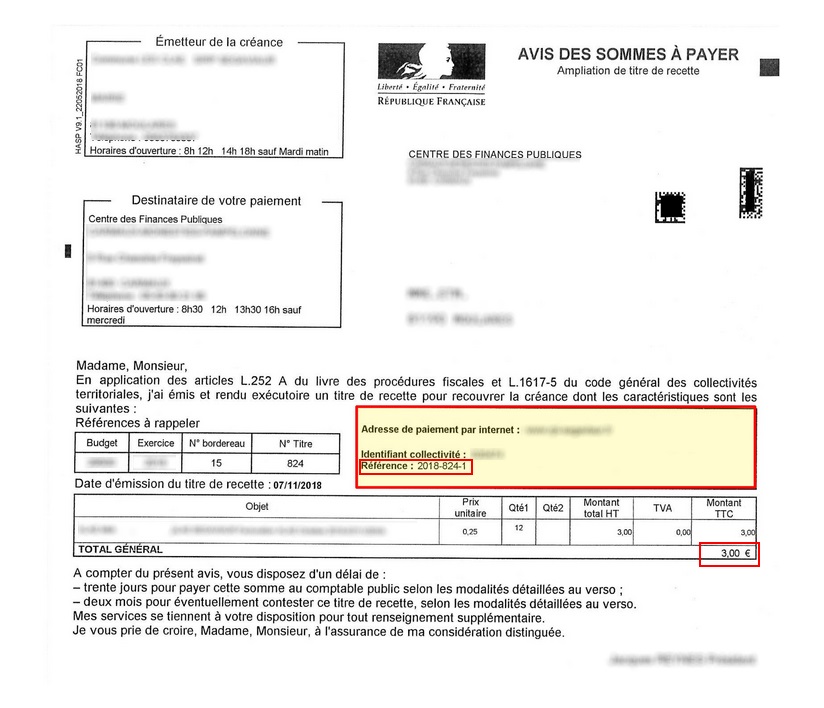 Les informations nécessaires au paiement figurent sur votre avis des sommes à payer.